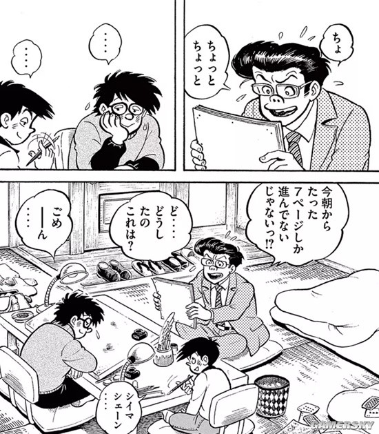编辑:“普通人努力一点,一天至少可以画个2、30页吧!你到底在做什么啊?”