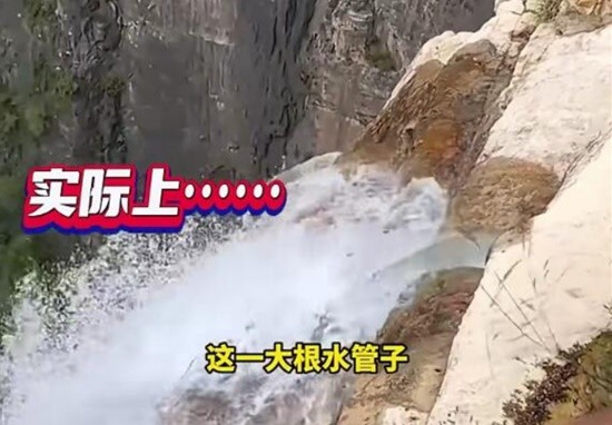 云台山瀑布源头竟是几根水管 网友表示是常规操作