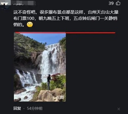 那天他正好玩无人机,本来是想给瀑布拍几张美美的照片,经过千辛万苦找到瀑布源头的他傻眼了,源头竟然居然不是纯天然的,而是几根水管在放水,大失所望。