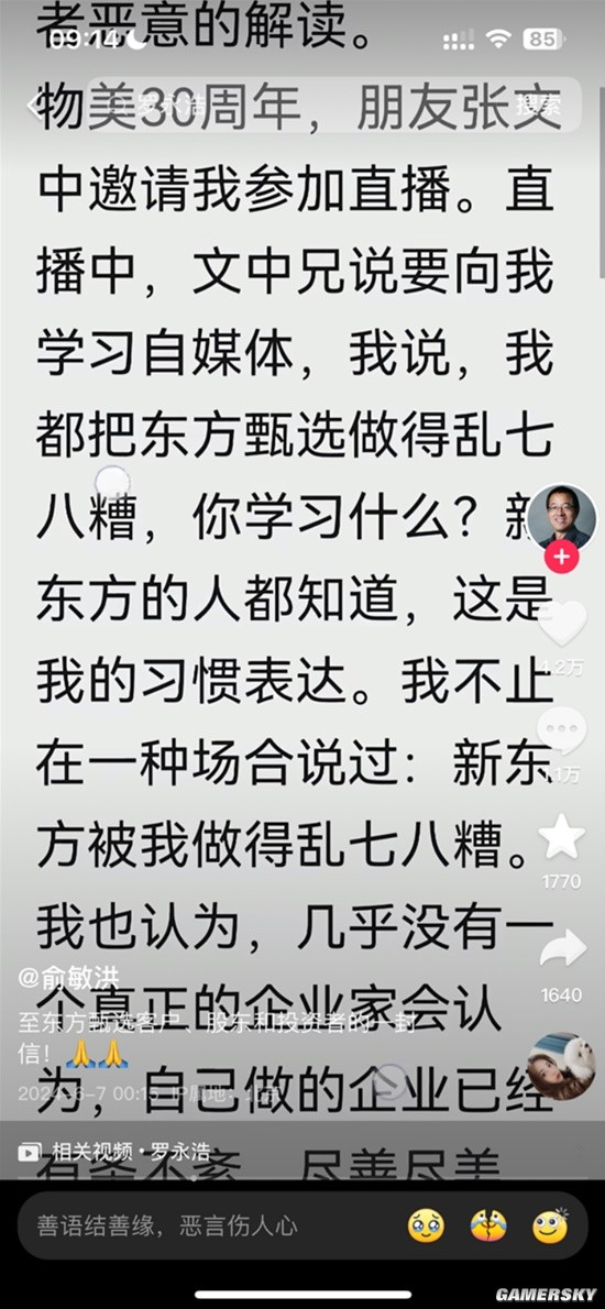 俞敏洪:“东方甄选做得乱七八糟”只是谦虚表达