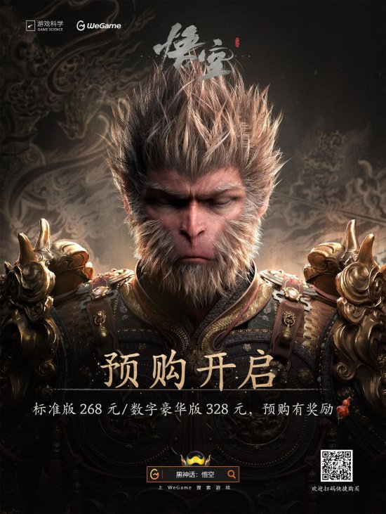 WeGame《黑神话:悟空》今日开启预购,立即预购可获得游戏内特殊物品、解锁专属纪念卡。