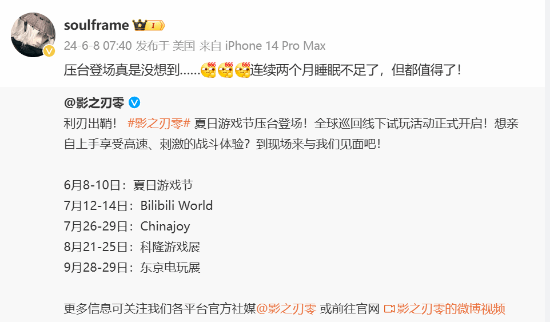 在新视频发布的同时,游戏制作人soulframe也在社交媒体上发表了感言:“压台登场真是没想到……连续两个月睡眠不足了,但都值得了!”