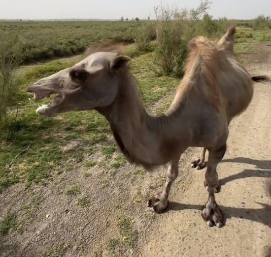 骆驼吃柠檬被酸出表情包 疯狂甩头流口水