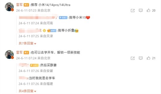 同时他也在评论区推荐了小米14系列,包括小米14、小米14 Pro、小米14 Ultra。除了买新手机之外,雷军还建议可以去学开车,解锁一项新技能。