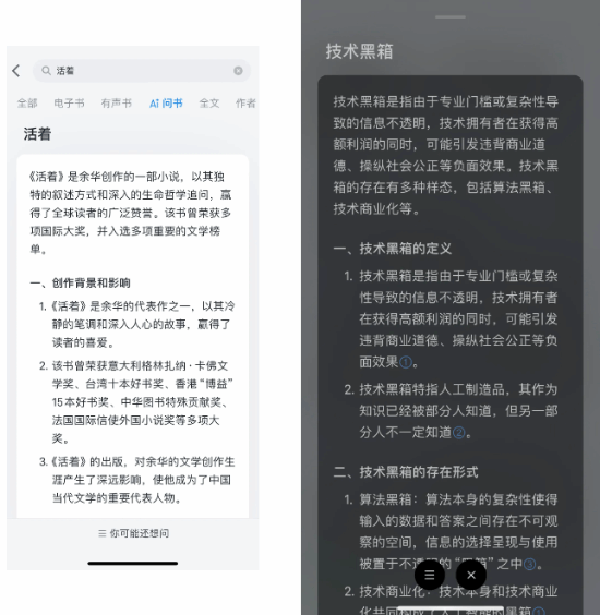 借助腾讯混元大模型,微信读书推出 “AI问书”功能,遇到不懂的名词和问题,通过搜索框搜索或长按书籍原文,即可借助AI力量获得解释与回答。