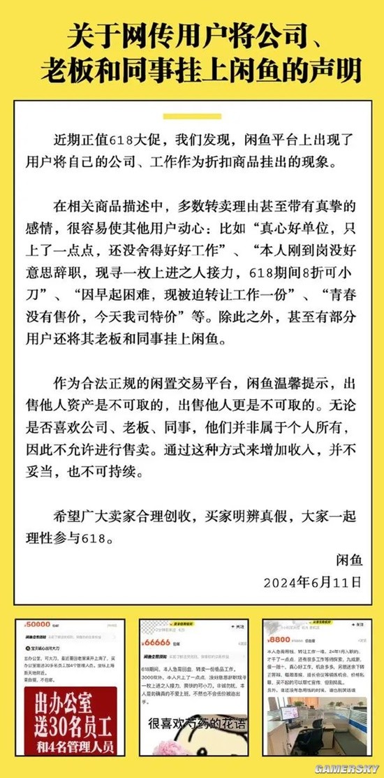 6月11日晚间,话题#闲鱼回应多用户未经本人允许挂售同事#冲上微博热搜第一。