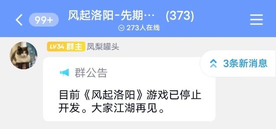 国产单机《风起洛阳》宣布停止开发 项目组全部离职