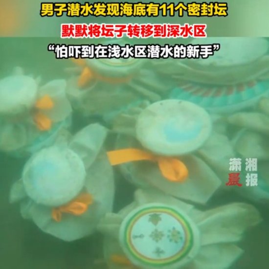 男子潜水发现海底有11个密封坛 默默将坛子转移到深水区