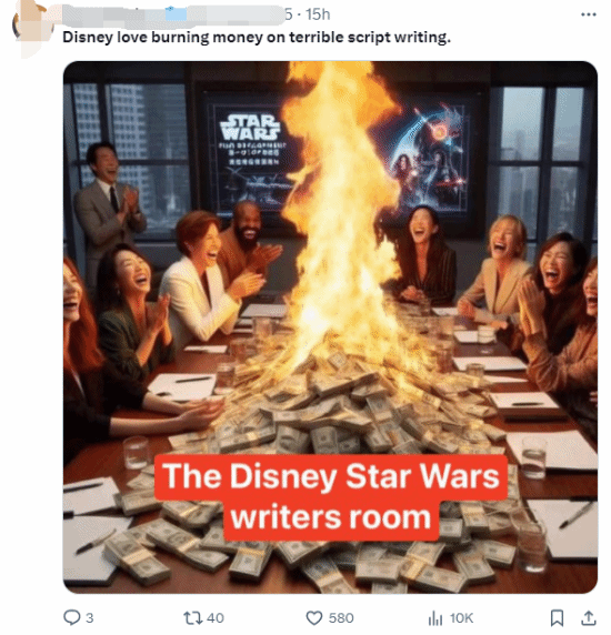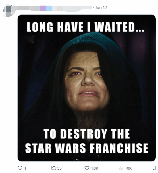 愤怒的粉丝们表示,这是对观众智商的侮辱,也是一种愚蠢低级的政治正确。还有网友调侃,再这样下去可能“原力(the Force)”这个词都会被“温柔的抚摸(the Gently Touch)”取代,因为有人觉得带“f”的词攻击性太强了。