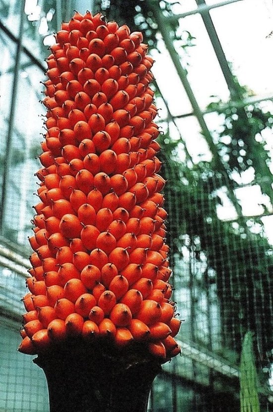 从种子长到巨大的球茎,就需要多年的时间。每年球茎会抽出一片绿色叶子,球茎越大,叶子就越大,叶子就像一棵树,最大的可达三四米高,5米宽。
