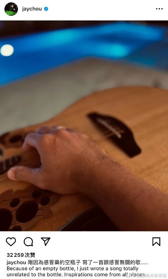 周杰伦发文:“刚因为感冒药的空瓶子 写了一首跟感冒无关的歌……”已经写完了,那离发歌还会远吗?不少网友催更,年底会有新专辑吗?