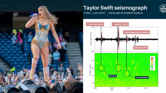 据报道,6月13日,英国官方称歌手斯威夫特7日的演唱会上歌迷太过热情,致地震仪检测到地面震动。