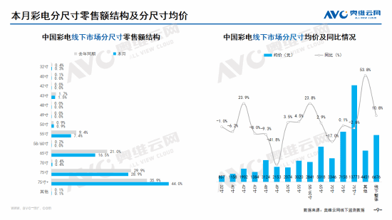 在各种尺寸的彩电中,75寸及以上大屏电视的零售额占据了整体市场的44.0%,并呈现出8.1%的同比增长态势。
