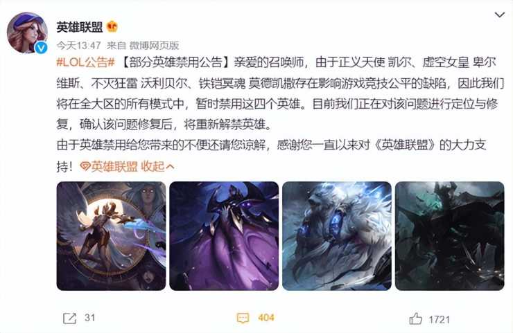 英雄联盟宣布暂时禁用四个英雄-暂时禁用四个英雄的英雄介绍