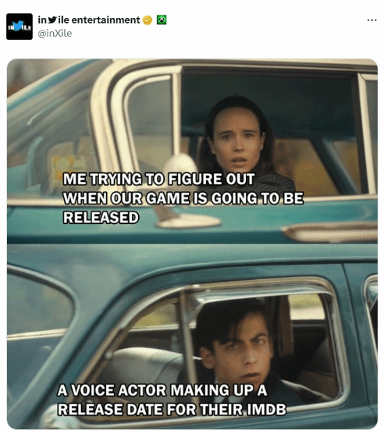 虽然这一列表的真实性从未得到证实,但inXile已经在社交平台X上对此进行了调侃。一张来自Netflix剧集《伞学院》的静态图片的表情包显示,发布原帖的人正在“编造发售日期”。