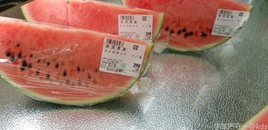 与中国瓜农动辄“货车售瓜”的“壮观”场景相反,日本的西瓜由于价格过于昂贵,鲜有按“个”出售的情况,往往是切成薄薄一片,用保鲜包装细细封好,供消费者“浅尝辄止”。
