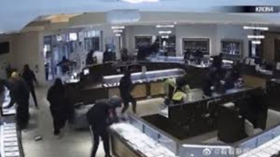 美国珠宝店遭20名蒙面大汉集体抢劫 2分钟洗劫一空