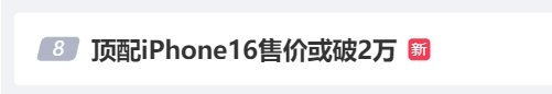 截至发稿前,“顶配iPhone16售价或破2万”也已登上热搜。