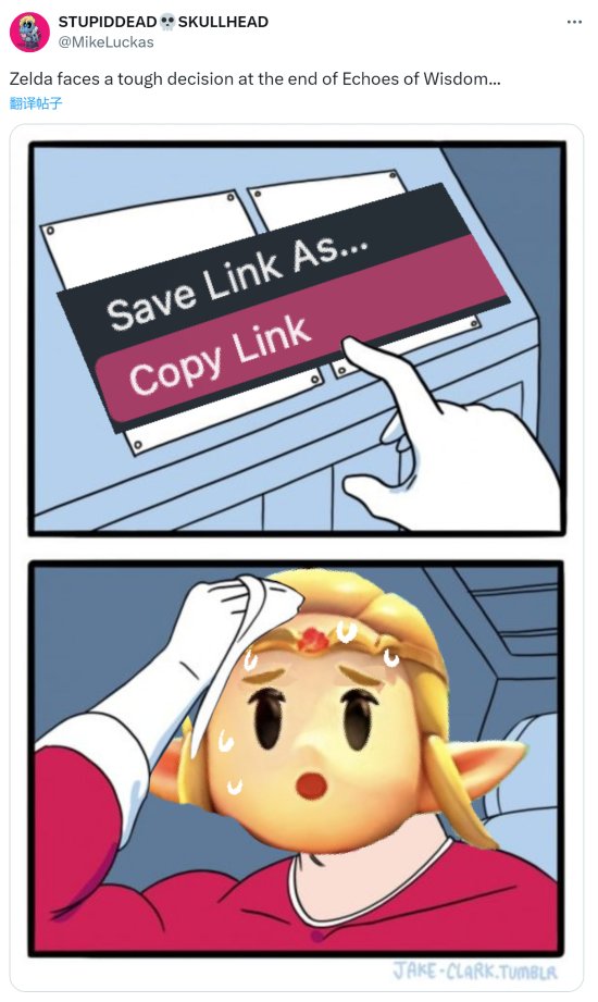 在昨晚的任天堂直面会上,任天堂正式公布了以塞尔达公主为操作角色的《塞尔达传说》2D新作《塞尔达传说:智慧的回响》,终于可以操作公主了!之后,网友们也迅速创作了一批梗图,这次换塞尔达拯救林克了,一起来欣赏下吧。