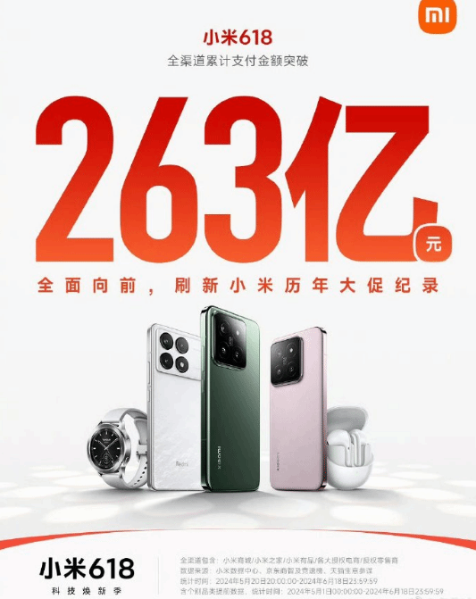 小米618全渠道累计支付金额突破263亿!刷新历年纪录