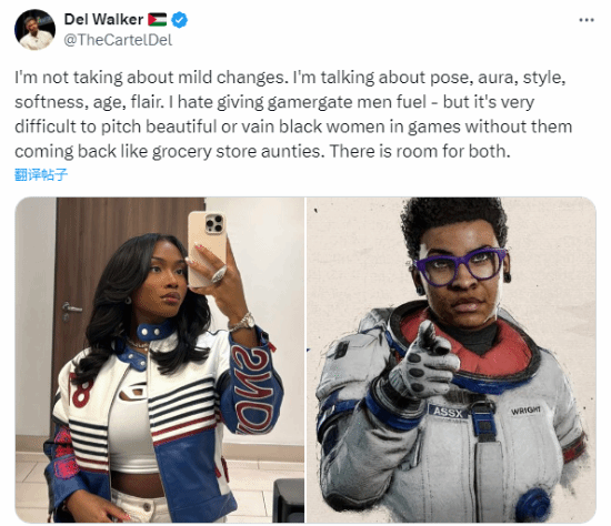 他补充说:“我说的改动不是轻微的改动。而是姿势、气场、风格、柔和度、年龄(等方面的改动)。我所说的话不是在刻意引起争议,但要在游戏中塑造漂亮黑人女性而不让她们像‘杂货店阿姨’一样被改回来是非常困难的。两者理应都有存在的空间。”