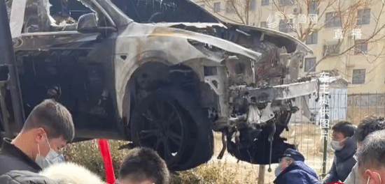 车主介绍,他的 Model Y 刚买半年左右,2 月 5 日晚间,车辆停放路边突然起火,整车被烧毁,车内价值三四万元的私人物品也被烧毁。