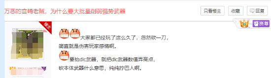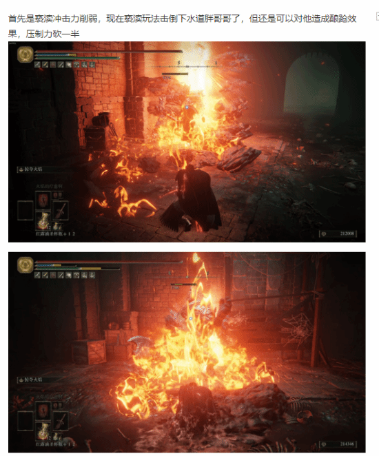 贴吧玩家测试后反馈,该补丁对部分武器进行了平衡性调整。其中,强力武器亵渎圣剑的战技冲击力疑似被削弱,暗月大剑远程削韧有所削弱,蒙格圣血矛出血效果削弱。