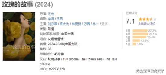 6月21日,该剧正式在豆瓣开分,超8.4万豆瓣用户打分,评分为7.1,其中,27.2%人给出5星好评,给出4至1星的比例分别为28.1%、25.4%、13.5%、5.9%。