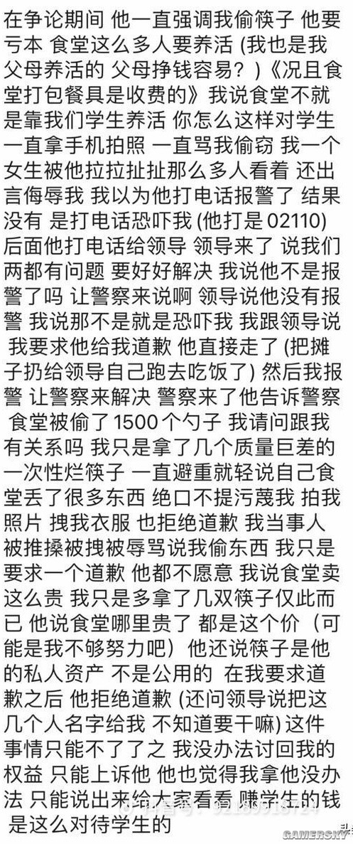 女生买2份饭拿6双筷子 被食堂人员怒斥盗窃