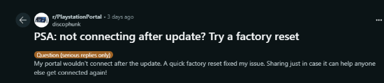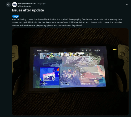 有玩家指出,更新后PlayStation Portal经常无法正常连接网络或主机,且图像质量也有所下降。许多网友表示遇到了类似的问题,最严重的还有人出现了死机的情况。