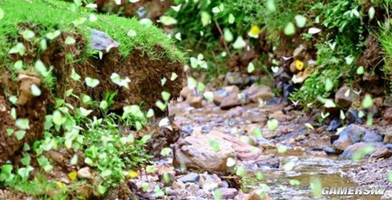 同样在元江县红河街道的青蛙箐等地,成千上万只蝴蝶来到水流边“组团”跳舞,景象十分壮观。