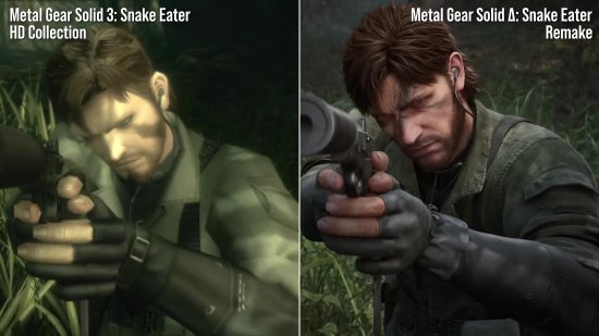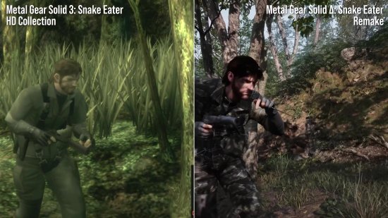 在视频中,数毛社还用了一些《合金装备3》高清合集版本的过场动画和重制版本的过场动画做了对比,可以发现重制版本的画面更加出色,细节也更加丰富。