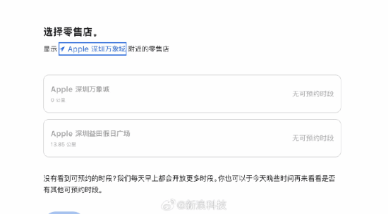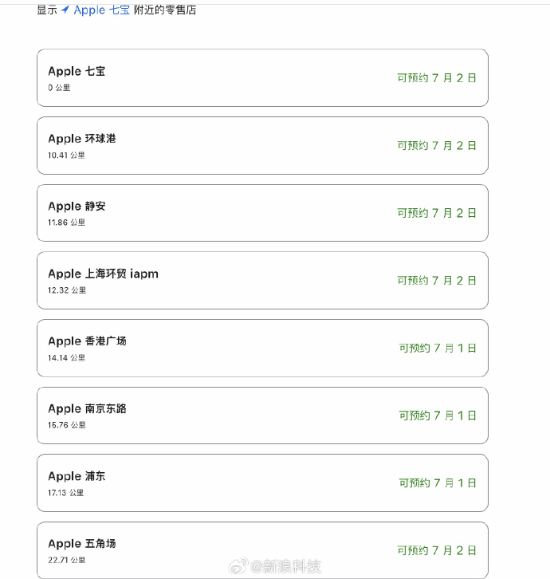 据新浪科技报道,目前全国所有Apple零售店的预约演示试用均需延后数日,已无首发日当天或临近的日期可供预约。例如北京的5家零售店可预约7月2日-4日,上海的8家零售店可预约7月1日-2日,零售店较少的广州、深圳等城市甚至已无时段可以预约。惟同日首发的中国香港特别行政区预约名额稍显宽松,可预约6月30日的演示试用。