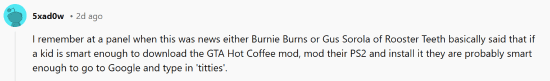 而也有玩家提到,这两款游戏的区别在于,热咖啡是《GTASA》游戏内未使用且未评级的代码,在游戏发售时完全没有告知玩家和评级机构。而《博德之门3》则是让每位玩家知道“刺激内容”的存在。