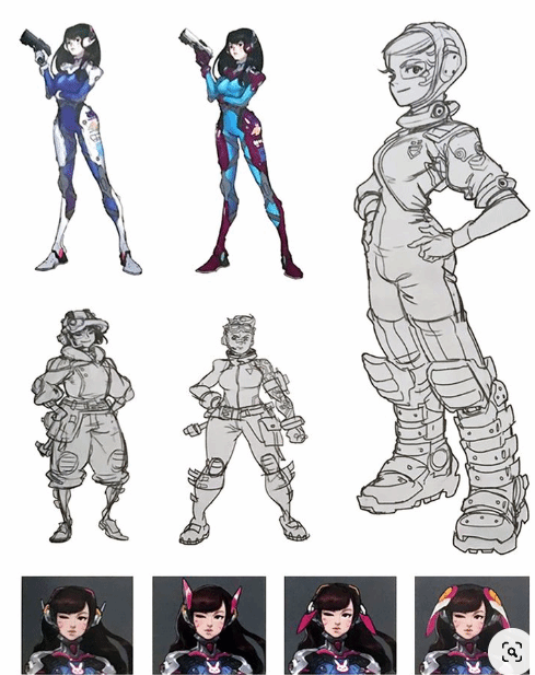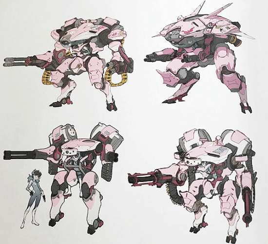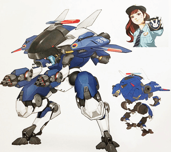 D.Va最初的角色概念之一是一位驾驶机甲的英雄,受到机甲动漫和漫画的启发,最终设计出了D.Va的外观。设计师最初以猫为主题设计机甲的贴纸和插图,但后来将其改为了兔子,因为后者活泼的特点更能体现机甲短程助推火箭的功能。此外,在一些早期概念图中,D.Va还曾以孩子的形象以及年长老人的形象出现。