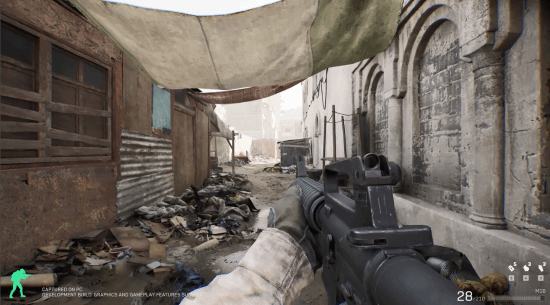 除此之外,在对摩加迪沙的城市塑造方面,《三角洲行动》做的也是可圈可点,除了残垣断壁和破败的街道外,地图上也有不少用于伏击的射击孔,这使整个地图看起来更显得像一个处处暗藏杀机的战区,而非只有敌我双方、专为玩乐打造的竞技场,当这一切被如今的高技术力所呈现出来时,玩家便能体会到极致的临场感,以及“黑鹰坠落”事件发生在此并非偶然。