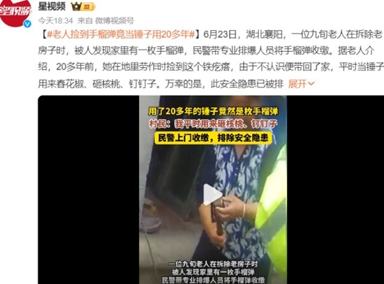老人捡到手榴弹竟当锤子用20多年 平时砸核桃钉钉子