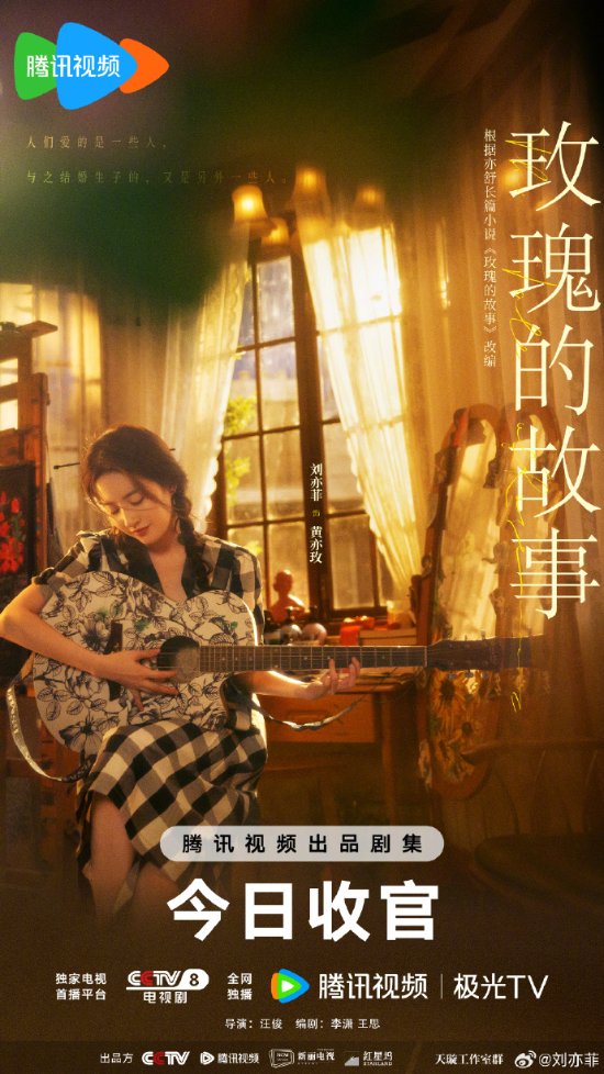 豆瓣7.1分!刘亦菲晒照庆祝《玫瑰的故事》今晚收官