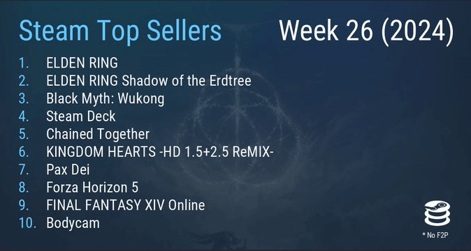 最新Steam畅销榜出炉 《艾尔登法环》及其DLC位居榜首 《黑神话》紧随其后