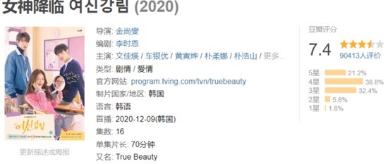 该剧于2020年9月在韩国播出,目前豆瓣9万多人打出7.4分。