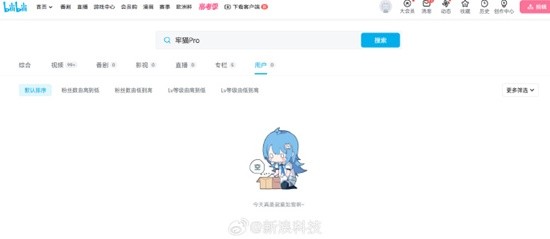 新浪科技发现,目前在B站搜索用户“牢猫Pro”已无结果显示,也就是说该账号已被封禁。