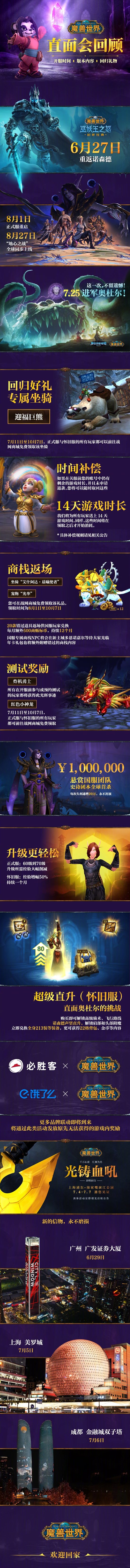 直面会中,还有诸多其它的内容公开:7月11日战网服务重启,7月25日进军奥杜尔。还有回归好礼,专属坐骑,所有玩家都将获得14天免费游戏时长等福利,官方表示月卡也不会涨价。更多内容可查看官方回顾长图。