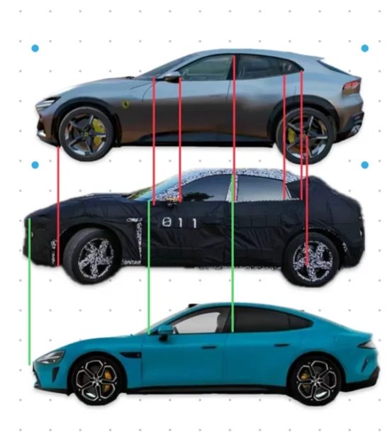4、家族设计元素:侧面摄像头、黄色卡钳及五辐式轮圈等,与小米SU7的设计元素相呼应,显示出品牌设计语言的连贯性。不难看出,小米汽车首款SUV车型MX11确实看点十足,特别是侧面造型,与法拉利Purosangue有相似之处。