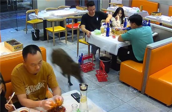 南京一野猪冲进饭店 顾客兴奋追打 网友:下酒菜跑了
