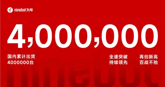 今日,九号电动今日官宣,旗下智能电动车国内累计出货量突破400万台,号称“创造行业新速度”。