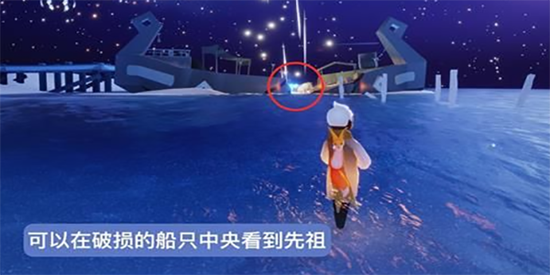 4、继续向前靠近船中央,收集全部的星光就能解锁先祖了。