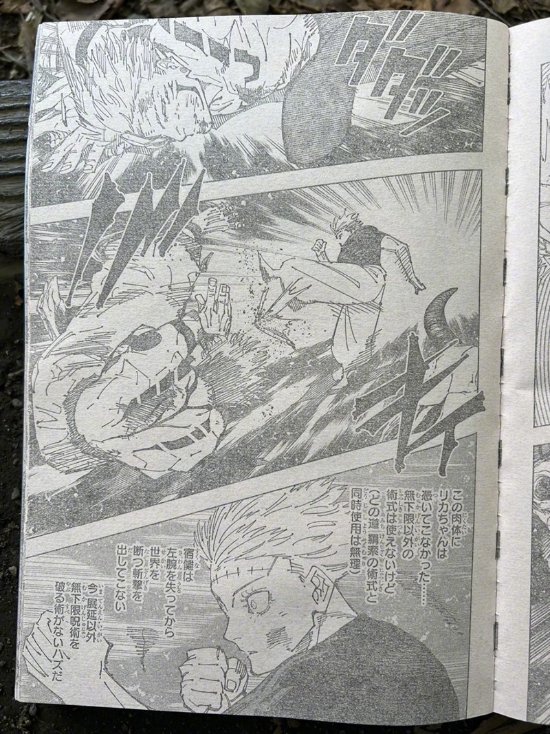 《咒术回战》262-2话图透来了,是的,本周更新的是262-2话,也就是上次那7页根本没画完。本次接着之前的战斗,还是乙骨忧太操控五条悟的身体和宿傩战斗,但是不能使用无下限以外的术式,也不能同时使用羂索的术式。关键时刻,录音机播放出了狗卷本人“不许动”的声音阻止了宿傩。