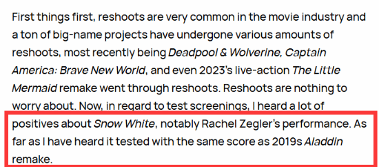 出人意料?真人版《白雪公主》内部试映反响非常好