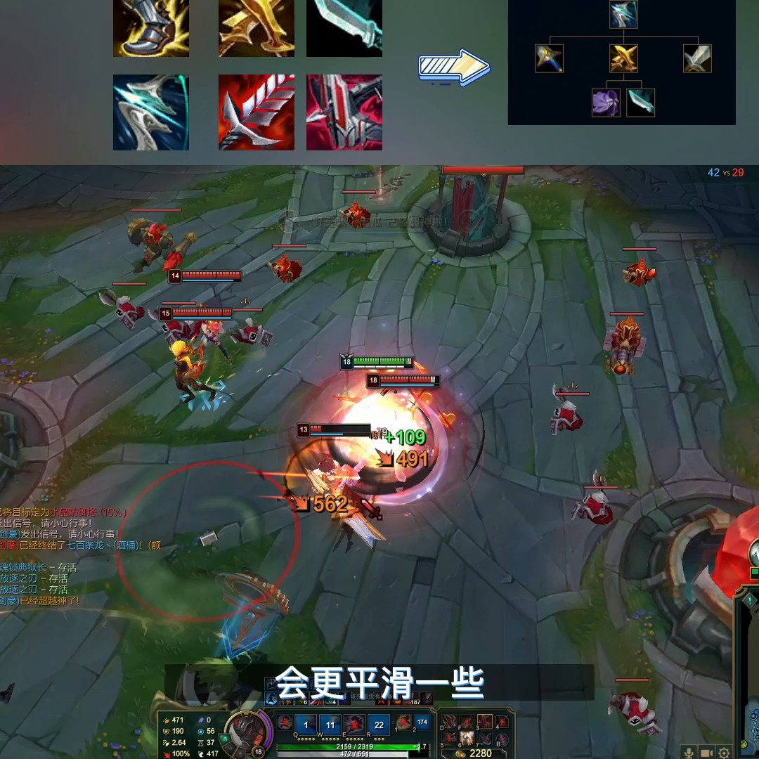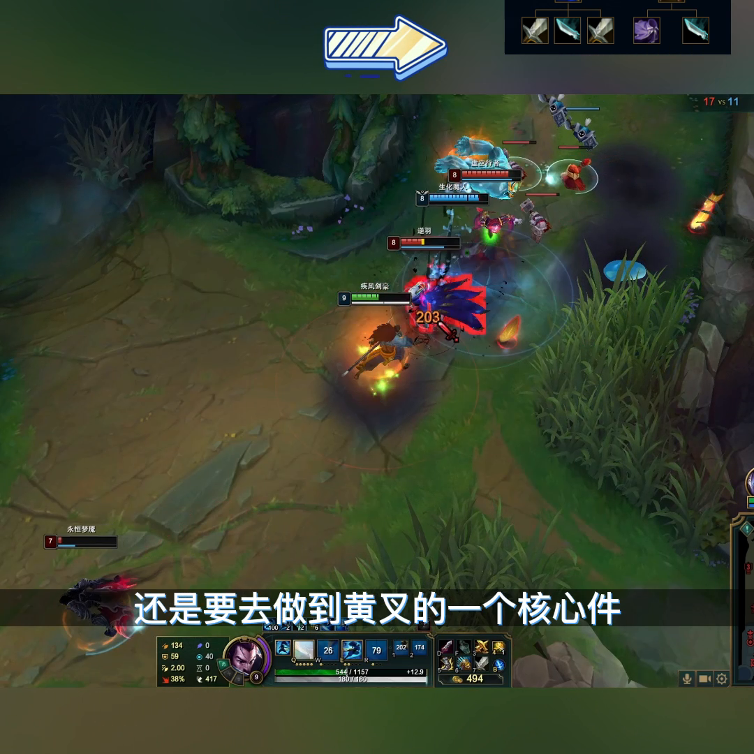 →第一件出攻速鞋,虽然黄叉的属性变差了,但是亚索在9级想做到满Q攻速,还是要去做到黄叉的一个核心件,后续可以补出新版本的无尽以及盾弓,增加伤害以及生存能力。