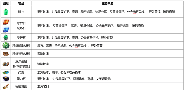主要获取地点:物品分解、混沌地牢、讨伐星辰护卫、艾芙娜的委托等。